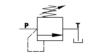 The spring pushes the poppet onto the seat. P is connected to the system.The pressure