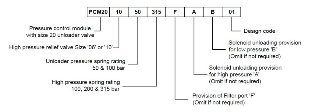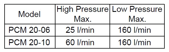 Designed to control Double pump of Hi-Low system. Unloads low pressure pump when system pressure rises above the pressure set on unloader valve. Relieves high pressure pump when system pressure reaches the value. Solenoid unloading facility available as an option